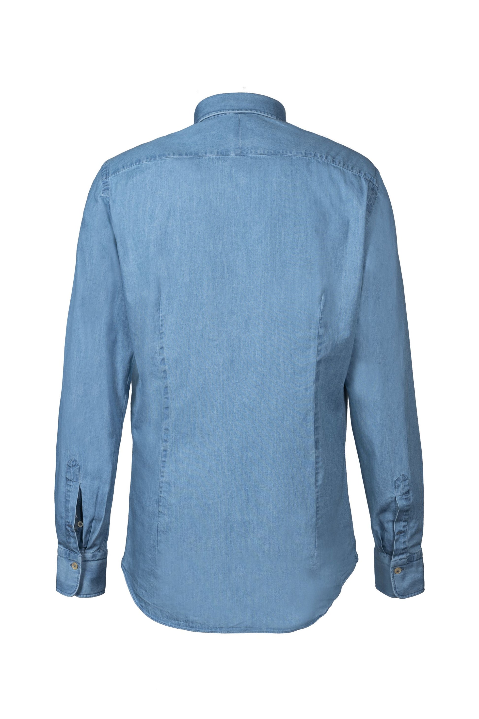 Washed Slim fit shirt with French Soft Collar in Light Denim
