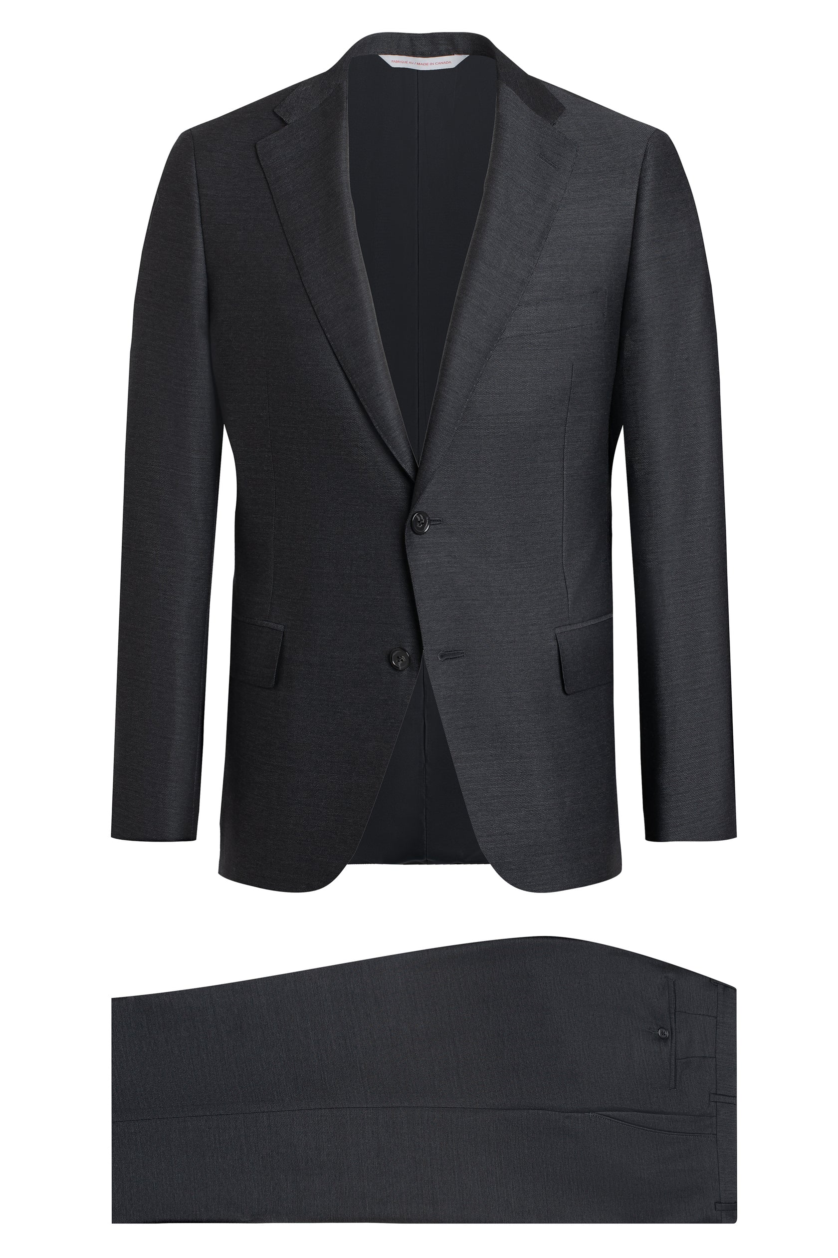 A sophisticated charcoal birdseye suit, woven in a durable double twist, is one of our new favorites. The year-round weight wool is perfect for all seasons. Made in our popular full canvas, contemporary fit suit, this timeless and versatile suit is fully lined and paired with flat front trousers.