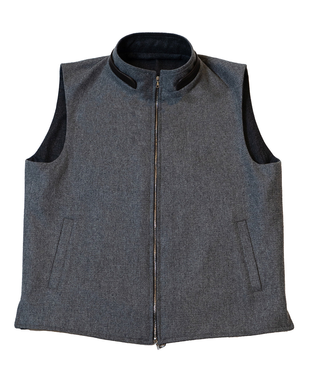 The Conrad Model is a Rego Bespoke reimagining of the classic finance vest, meticulously crafted from luxurious double-sided fine flannel wool. This versatile layering piece is designed to elevate your wardrobe, offering both warmth and elegance. Perfectly suited for wearing over a shirt or under a jacket, the Conrad seamlessly blends sophistication and functionality, making it an essential addition to the modern professional’s attire.