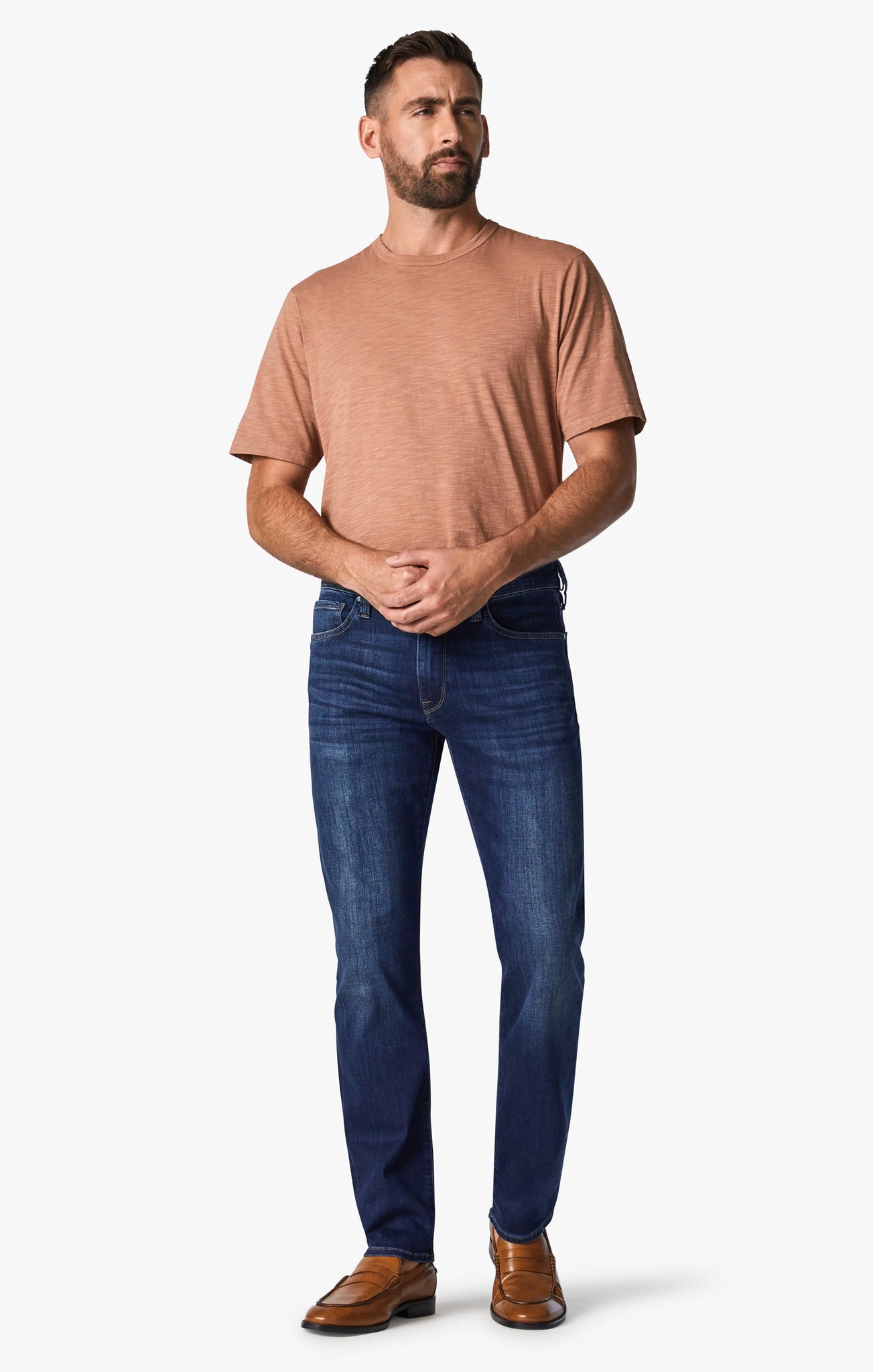 With denim that offers great stretch retention and a cool hand feel, this straight leg has a mid-rise fit and slightly tapered leg from the knee down.