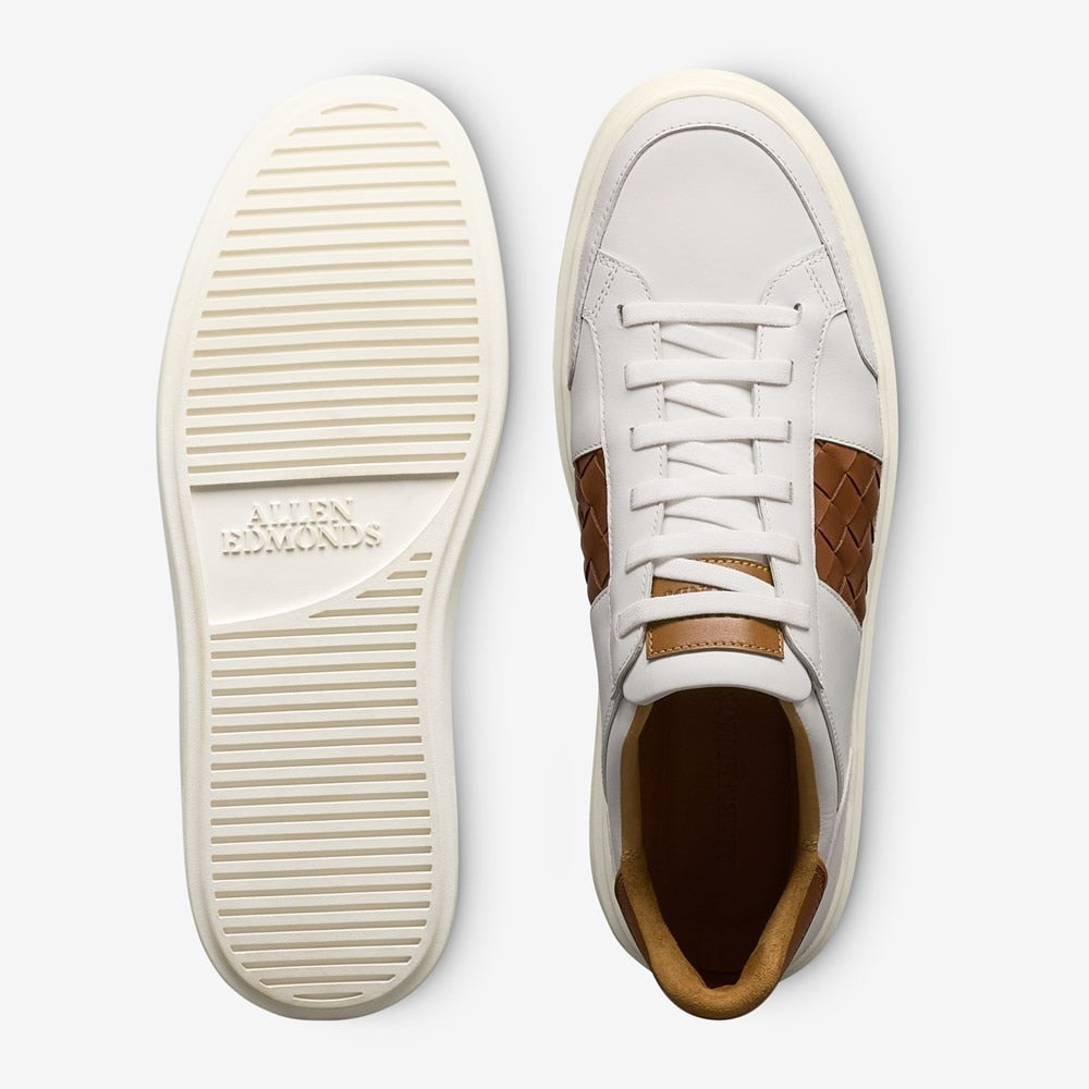 ALLEN EDMONDS OLIVER SLIP-ON SNEAKER - WHITE / WOVEN LUGGAGE LEATHER