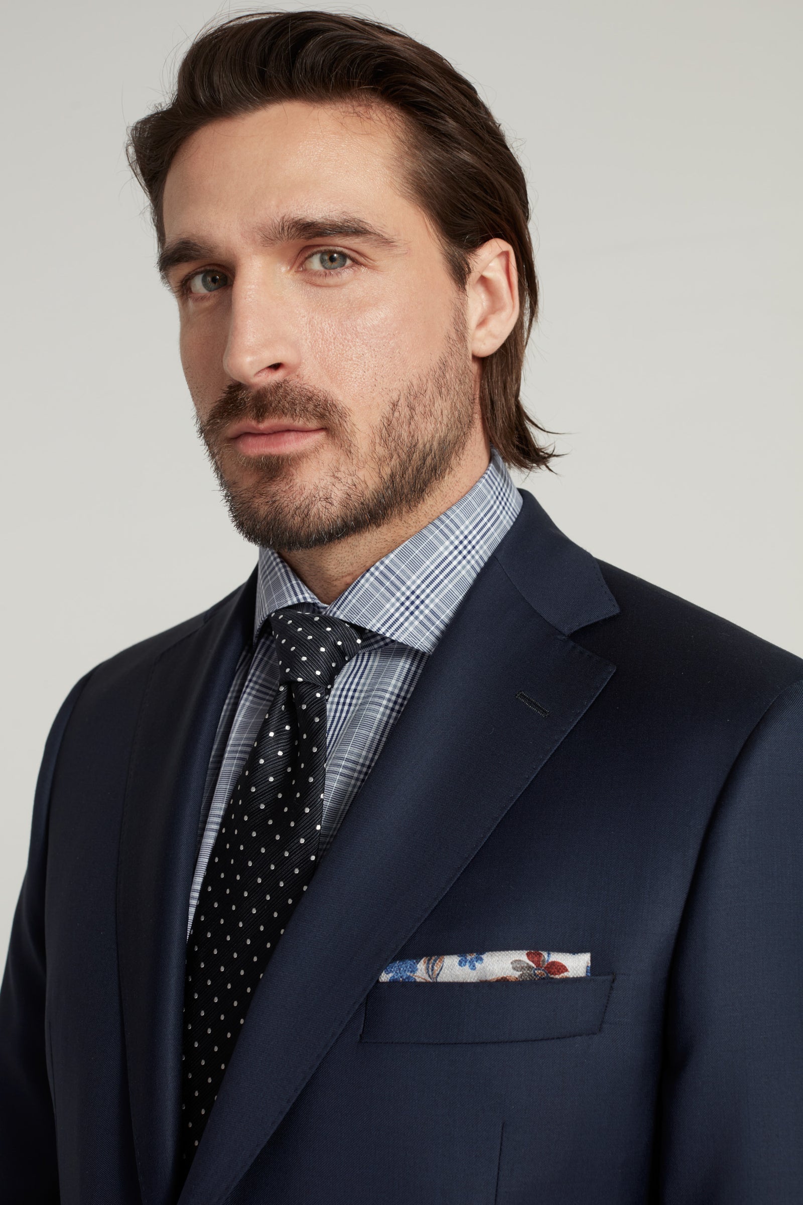 Ice Wool 面料技术通过对纱线从极热到极冷进行反复热冲击的环保、无毒工艺提供性能属性。 这创造了防水、防污、抗皱、透气性、自然拉伸和等温特性,有助于保持最佳体温——温度升高时冷却,温度下降时加热。 由意大利科伦坡纺织厂专门为 Samuelsohn 织造。