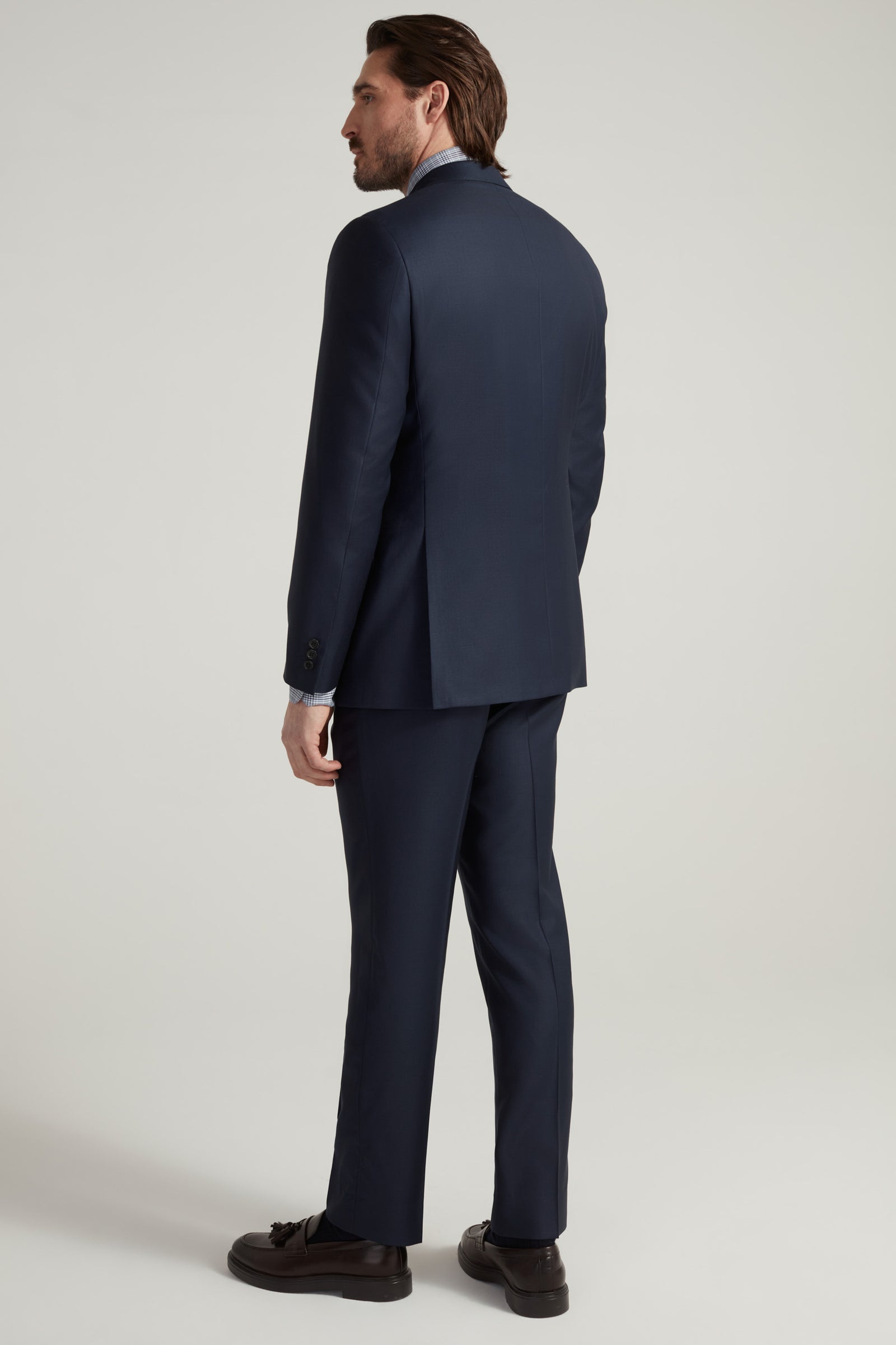 黑回来了。 这款纯黑色 Ice Wool 西装采用现代剪裁剪裁。 采用 Super 150 面料全衬里,优雅而永恒。 适合全年穿着。